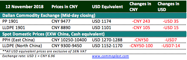 Total inventories at Sinopec and CNPC’s warehouses piled up 75,000 tons from last Friday to 850,000 tons as on 12 November 2018.
