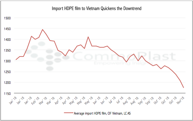 Import HDPE film to Vietnam quickens the downtrend on costs and demand