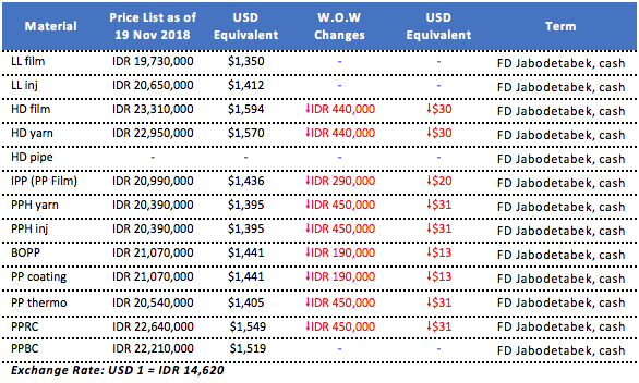 Local PP, PE offers in Indonesia continue to weaken