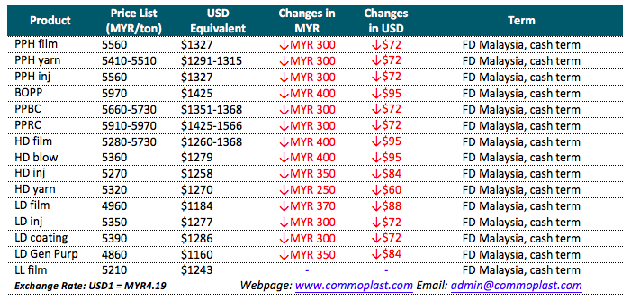 Malaysian maker announced December delivery PP, PE offers to domestic market