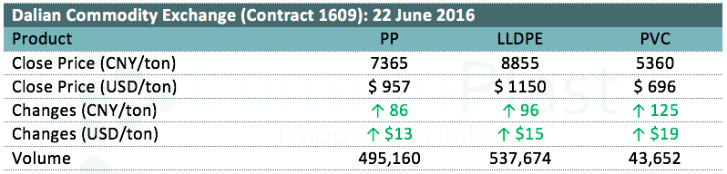 Dalian Commodity Exchange: 22 June 2016