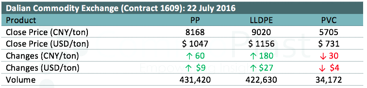Dalian Commodity Exchange: 22 July 2016