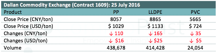 Dalian Commodity Exchange: 25 July 2016