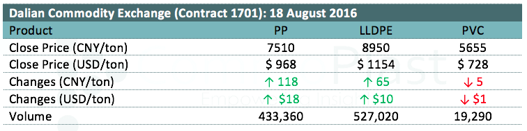 Dalian Commodity Exchange: 18 August 2016
