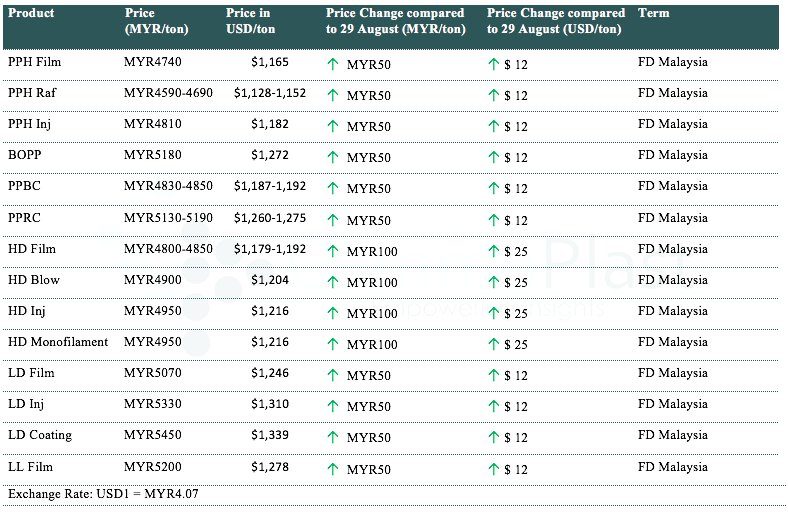 Local PP and PE offers rebounded in Malaysia