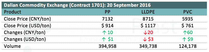 Contract number 1701 on Dalian Commodity Exchange on 20 September 2016 settled as following: