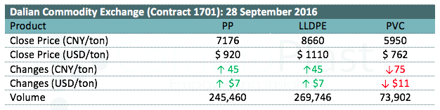 Contract number 1701 on Dalian Commodity Exchange on 28 September 2016 settled as following: