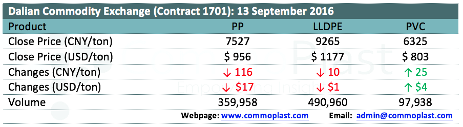 Dalian Commodity Exchange: 13 October 2016