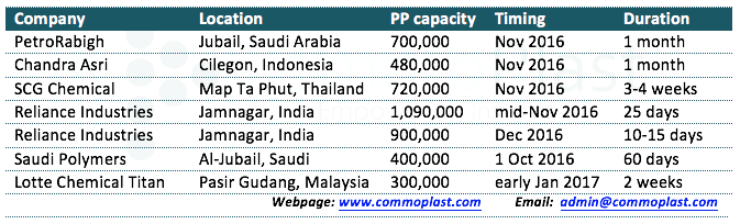 The Asian PP market was facing a serious lethargic demand condition earlier this month in the absence of Chinese buyers and weakening propylene costs. However, the situation has technically reversed this week as major overseas producers announced planned shutdown during November, which is expected to keep supply in check.