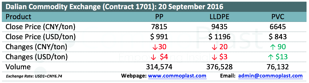 Contract number 1701 on Dalian Commodity Exchange on 20 October 2016 settled as following: