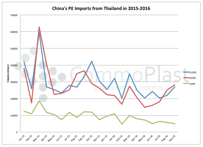 According to Chinese players, Thailand’s PTT is planning to suspend all contract PE businesses in China starting 2017. In its official email, the company said it would concentrate on domestic Thailand and Southeast Asia market in the coming year, which resulted in lower allocation to other export destination, including China.