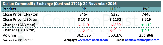 Dalian Commodity Exchange: 24 November 2016