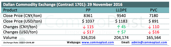Dalian Commodity Exchange: 29 November 2016