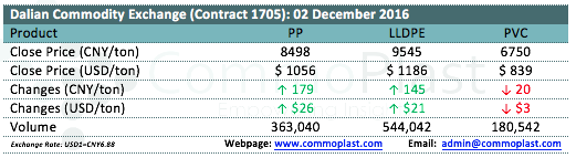 Contract number 1705 on Dalian Commodity Exchange on 02 December 2016 settled as following: