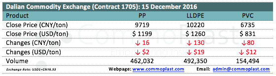 Contract number 1705 on Dalian Commodity Exchange on 15 December 2016 settled as following: