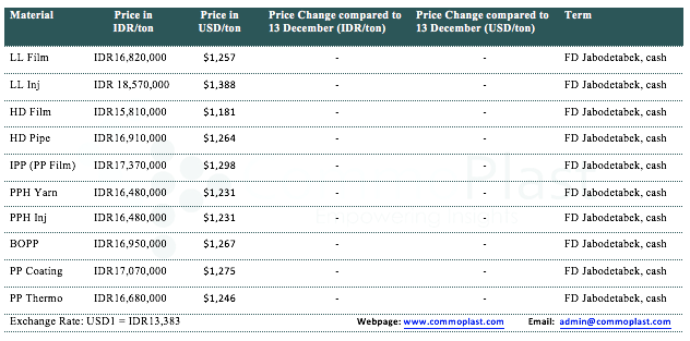 A major maker in Indonesia has implemented stable offers for its PP and PE today in local market as compared to last week. A source closed to the company informed that they are monitoring the market movement while additional measures would be implement later if necessary.