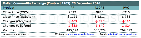 Dalian Commodity Exchange: 20 December 2016