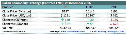 Contract number 1705 on Dalian Commodity Exchange on 28 December 2016 settled as following: