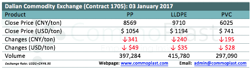 Contract number 1705 on Dalian Commodity Exchange on 03 January 2017 settled as following: