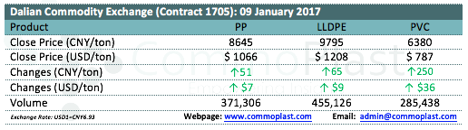 Contract number 1705 on Dalian Commodity Exchange on 09 January 2017 settled as following: