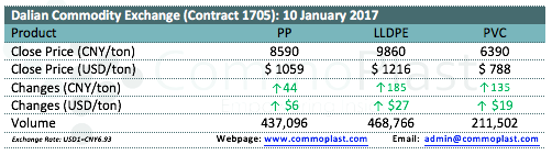 Dalian Commodity Exchange: 10 January 2017