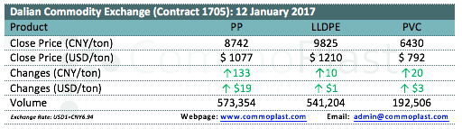 Contract number 1705 on Dalian Commodity Exchange on 12 January 2017 settled as following: