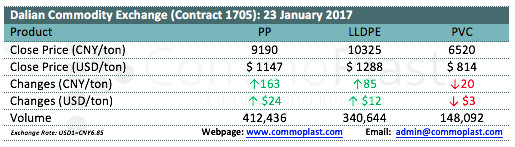 Dalian Commodity Exchange: 23 January 2017