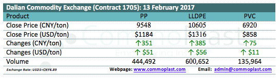 Dalian Commodity Exchange: 13 February 2017