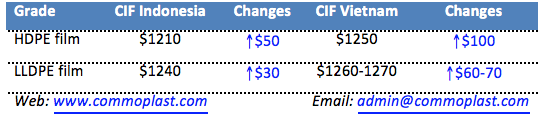 A buyer received the new offers commented, “Vietnamese buyers might not be able to accept such large hike on HDPE film cargoes at the moment. There are still lower price cargoes available in the market with shorter shipping time. Our suppliers claimed to have very limited quantity this month amid low operation rate, hence they might attempt to hold firm on the offers.”
