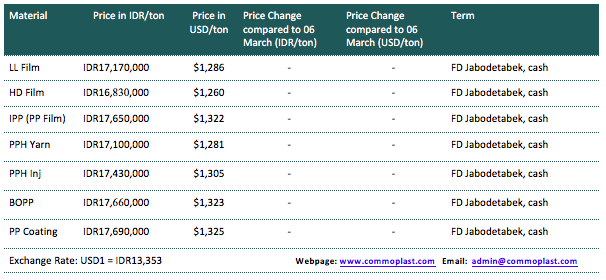A major maker in Indonesia has announced its new offers for PP and PE in domestic market today with stable offers as compared to last week.
