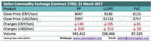Dalian Commodity Exchange: 31 March 2017