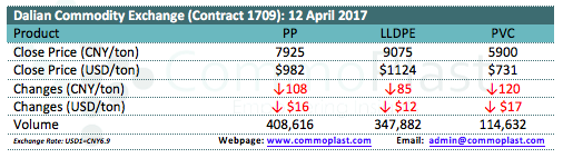 Contract number 1705 on Dalian Commodity Exchange on 12 April 2017 settled as following: