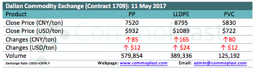 Contract number 1705 on Dalian Commodity Exchange on 11 May 2017 settled as following: