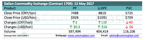Contract number 1705 on Dalian Commodity Exchange on 12 May 2017 settled as following:
