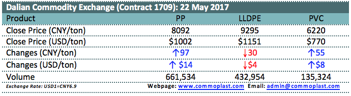 Dalian Commodity Exchange: 22 May 2017