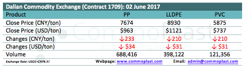 Dalian Commodity Exchange: 02 June 2017