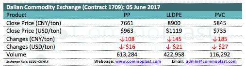 Contract number 1709 on Dalian Commodity Exchange on 05 June 2017 settled as following: