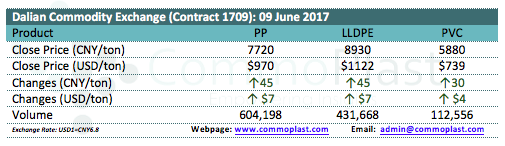 Contract number 1709 on Dalian Commodity Exchange on 09 June 2017 settled as following:
