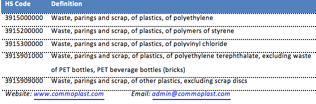 The ban would include most waste plastics including PVC, polyethylene and polystyrene, as well as mixed papers and slag with HS code stated in the following table: