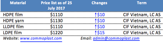 A major Thailand producer reportedly lifted PE offers to Vietnam this week by $10-15/ton following the general trend. Despite the increment, the producer’s latest offers are deemed to be more competitive than Middle Eastern materials, from which buyers seem to show interest.