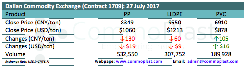Contract number 1709 on Dalian Commodity Exchange on 27 July 2017 settled as following: