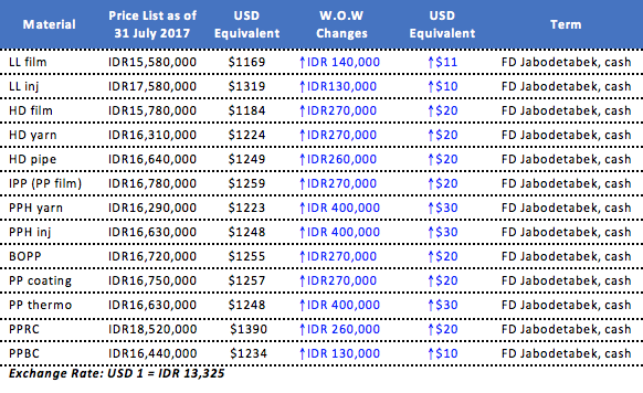Sentiment in local Indonesia market continue to improve as converters prepare inventories before entering the traditional high demand season, yet supply is tightening due to production disruption at domestic plants. As a result, a major local producer lifted PP and PE prices considerably on the first trading day of the week.