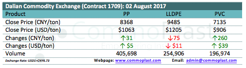 Dalian Commodity Exchange: 02 August 2017