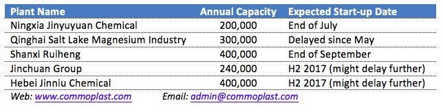 Several new PVC plants that were initially scheduled to come online within first half of 2017 have been now postponed, removing additional concern about the new supply.