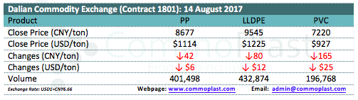Dalian Commodity Exchange: 14 August 2017
