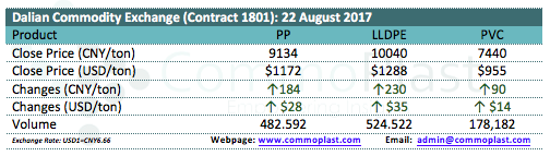 Dalian Commodity Exchange: 22 August 2017