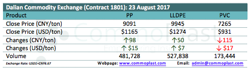 Dalian Commodity Exchange: 23 August 2017