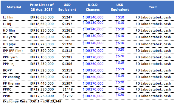 Indonesian maker lifted local PP, PE offers for seven consecutive weeks