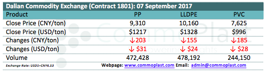 Dalian Commodity Exchange: 07 September 2017