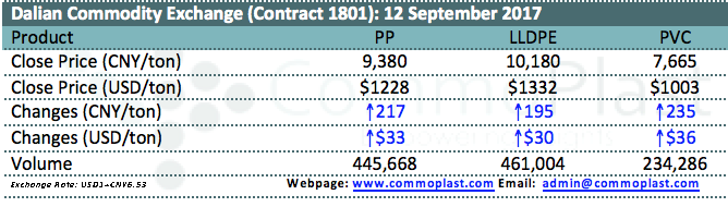 Dalian Commodity Exchange: 12 September 2017
